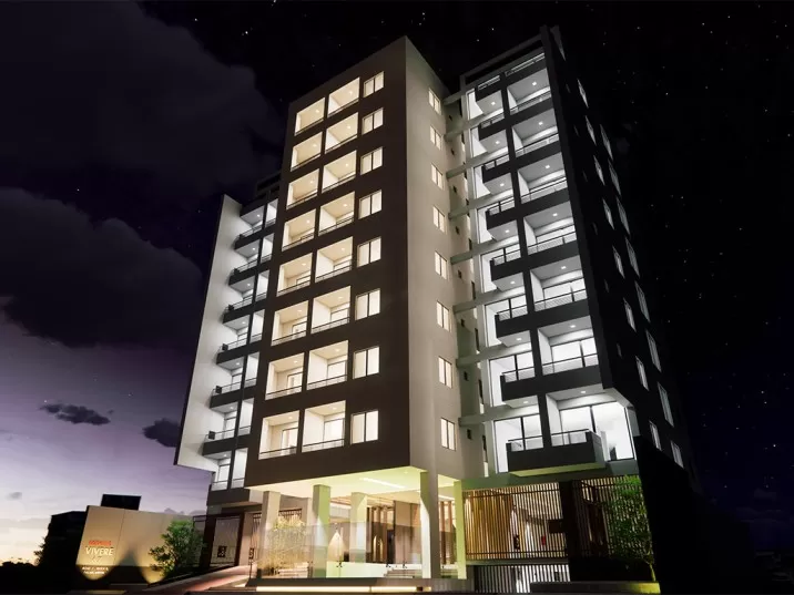 Dom-Inno, a prominent real estate developer in Dhaka, introduces its ongoing project, Vivere, offering luxury apartment in Pallabi, Mirpur, Dhaka. This prestigious project, designed by renowned Architect Abdus Salam & Profile Ltd & Engineers, spans 10 katha of land and boasts a 9-story foundation. Each spacious unit covers 1585 square feet and features 3 bedrooms, 3 bathrooms, and a maid’s bathroom.